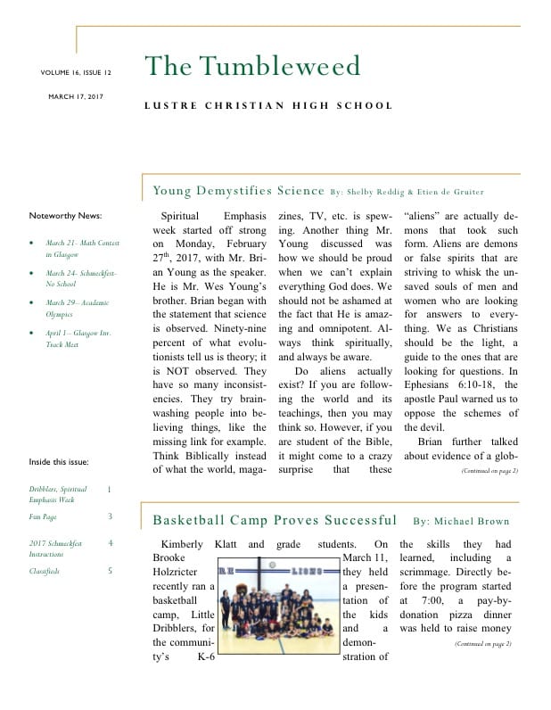 Get up-close-and-personal interviews with LCHS students, sports updates, the latest in Lustre news, and much more!