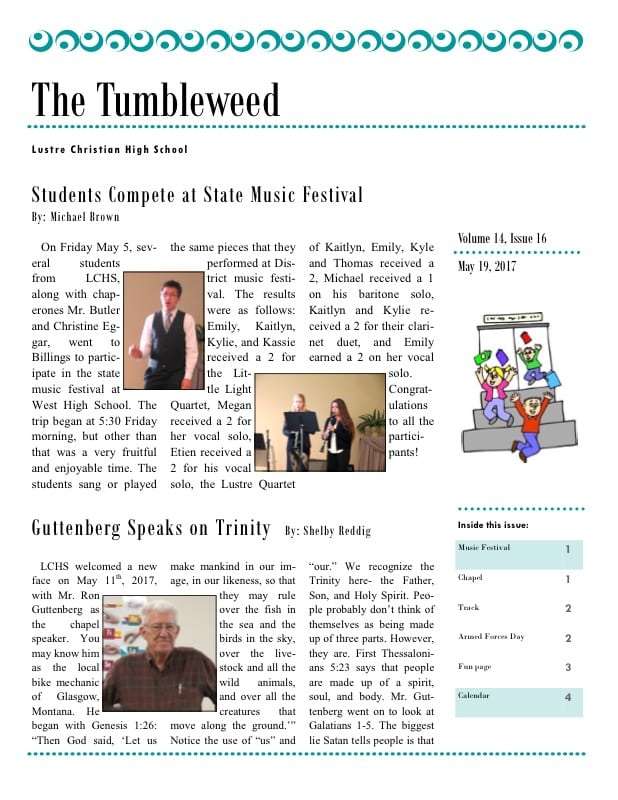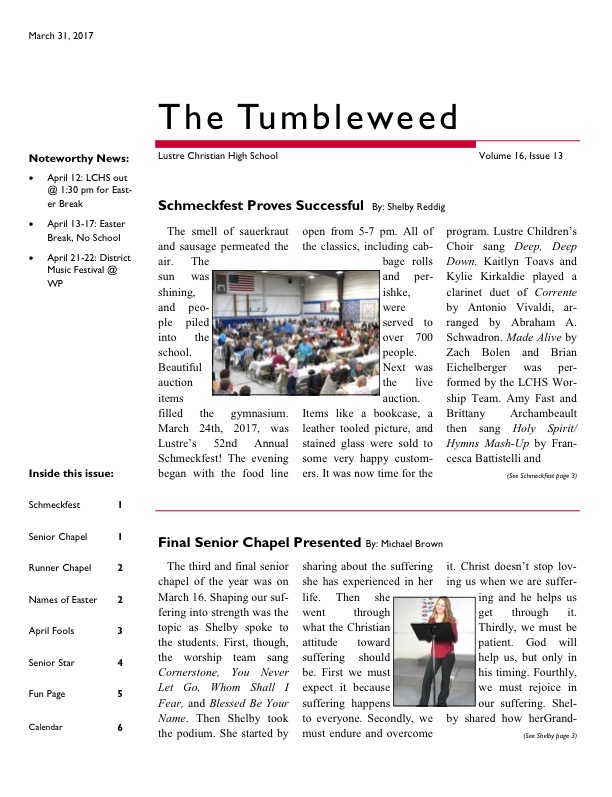 Many thanks to Mr. Matthyser & the students for their hard work in overseeing this top-notch publication.