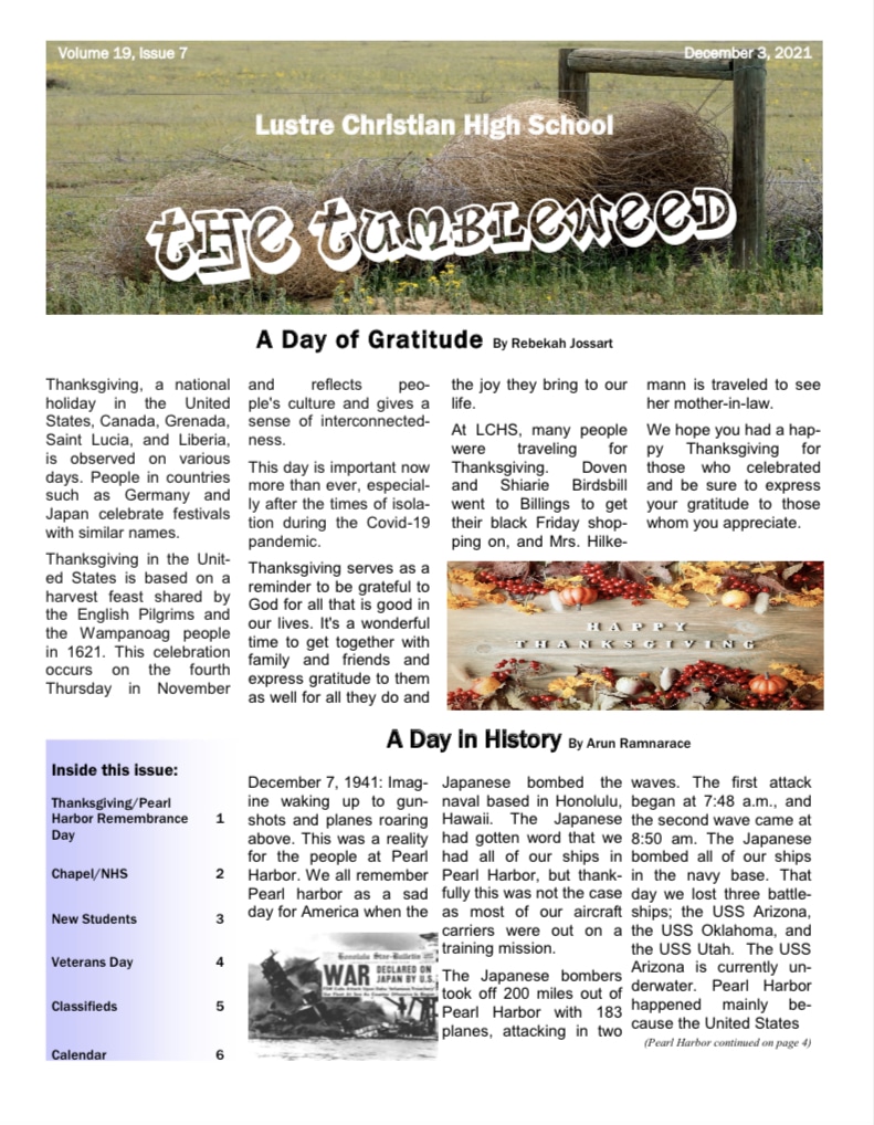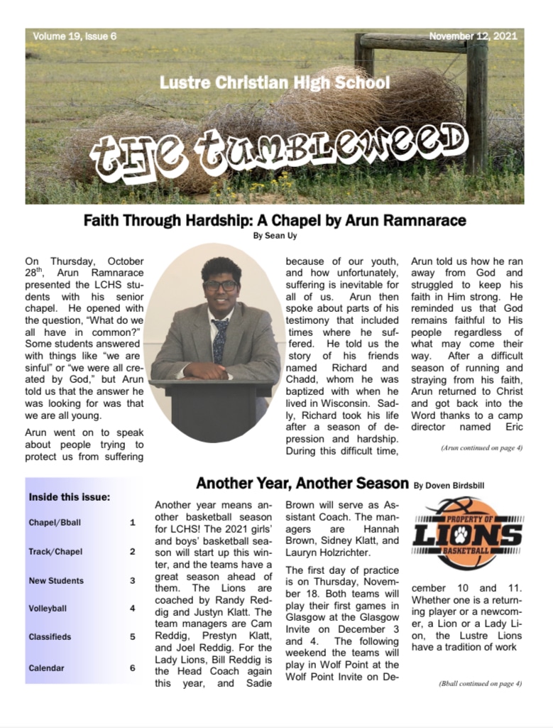 Many thanks to Mr. Matthyser & the students for their hard work in overseeing this top-notch publication.