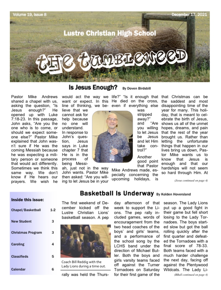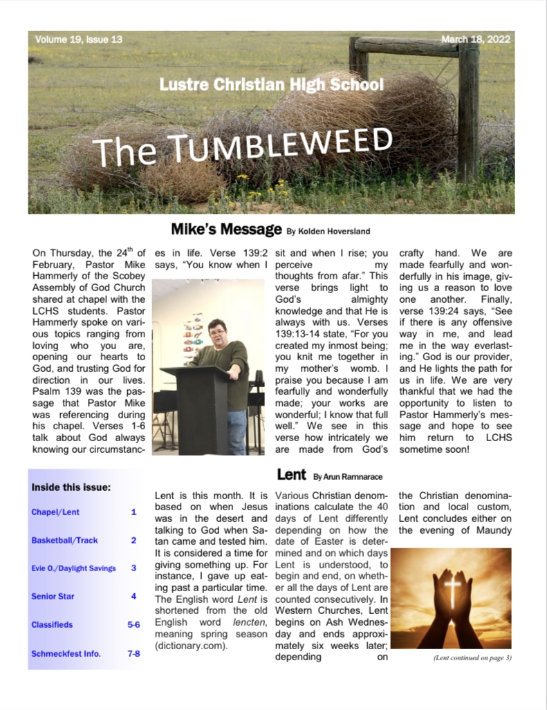 Get up-close-and-personal interviews with LCHS students, sports updates, the latest in Lustre news, and much more!